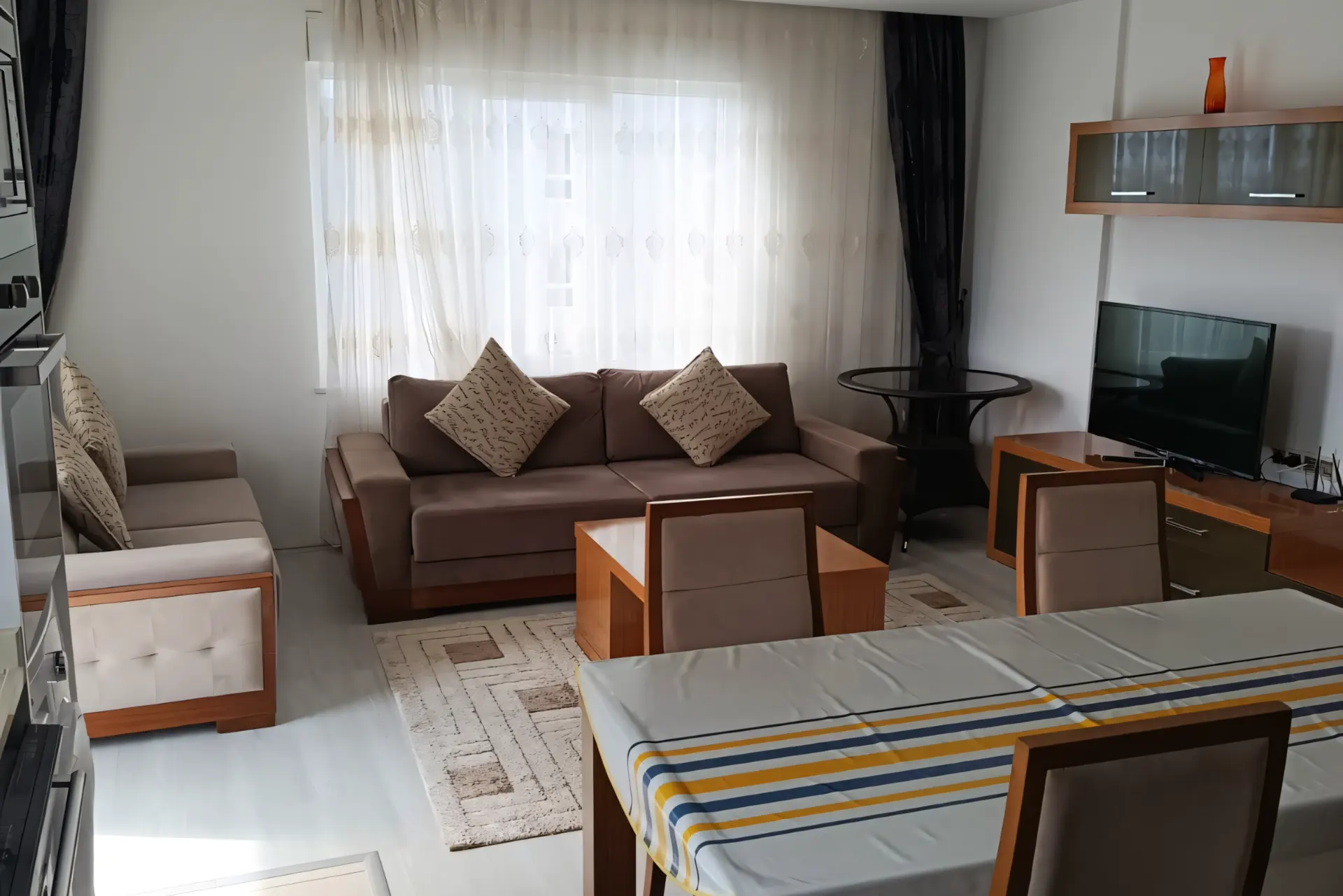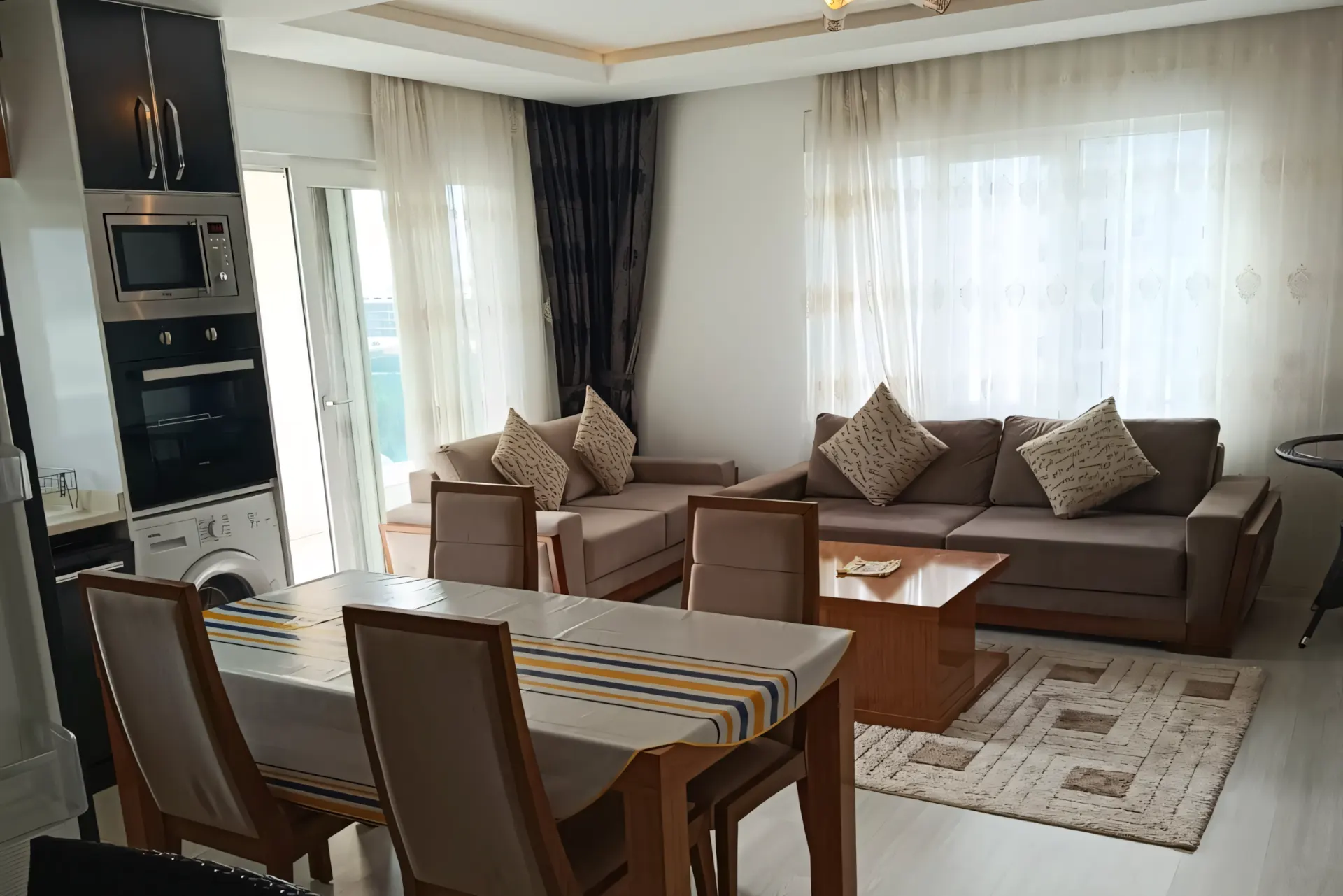 Mahmutlar offers a unique blend of nature, coastline and everyday comfort. From this furnished vacation home at an affordable price, you enjoy the gentle mountain breeze, open sky and easy access to shops, markets, cafes and transport lines. The sea lies 2.4 km away, close enough for daily visits but far enough to give the home a quiet retreat atmosphere. The setting between the green mountains and the Mediterranean makes this home ideal for those who want peaceful surroundings while staying connected to city life.
